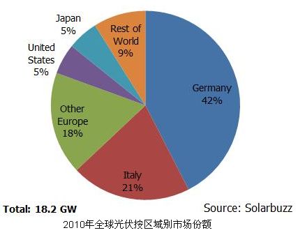 根據(jù) Solarbuzz 最新年度光伏市場報告2011 Marketbuzz,2010年全球光伏市場安裝量達到18.2GW,相較于去年增幅139%。
