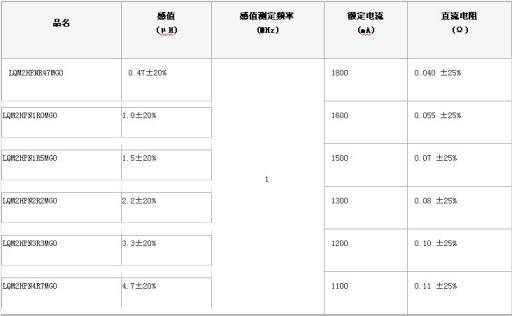 表1是各產品的主要特性,表二則是電流-感值偏執特性。