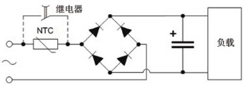 假設輸入電壓V1為220Vac,整個電網內阻(含整流橋和濾波電容)Rs=1Ω,若正好在電源輸入波形達到90度相位的時候開機,那么開機瞬間浪涌電流的峰值將達到I=220×1.414/1=311(A)。這個浪涌電流雖然時間很短,但如果不加以抑制,會減短輸入電容和整流橋的壽命,還可能造成輸入電源電壓的降低,讓使用同一輸入電源的其它動力設備瞬間掉電,對臨近設備的正常工作產生干擾。