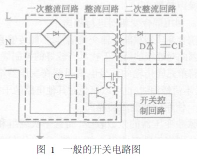單片機的開關電源工作時,其內部電壓和電流波形都以非常短的時間上升和下降,所以開關電源本身就是一個射頻干擾產生源。開關電源產生的干擾,按噪聲干擾源種類來分,可以分為尖鋒干擾和諧波干擾;若按耦合通路來分,可分為傳導干擾和輻射干擾,開關電路框圖如圖1。