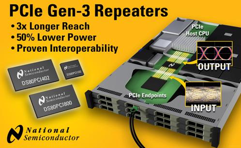 美國國家半導體公司宣布推出一系列全新的第三代(8Gbps)PCI Express®(PCIe)中繼器,它實現了無與倫比的信號調節性能且功耗極低,因此特別適用于數據中心服務器和存儲系統。