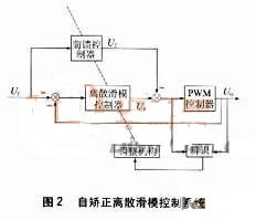 基于微處理器的離散滑模控制使逆變器輸出波形有較好的暫態(tài)響應,但系統(tǒng)的穩(wěn)態(tài)性能不是很理想。具有前饋控制的離散滑模控制系統(tǒng),暫態(tài)性能和穩(wěn)態(tài)精度得到提高(見圖1),但如果系統(tǒng)過載時,滑模控制器的負擔將變得非常重。自矯正離散滑模控制可以解決這個問題。