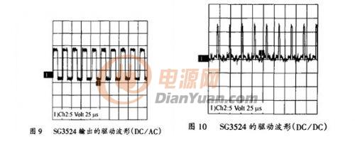 如圖3所示,DC/AC變換采用單相輸出,全橋逆變形式,為減小逆變電源的體積,降低成本,輸出使用工頻LC濾波。由4個IRF740構成橋式逆變電路,IRF740最高耐壓400V,電流10A,功耗125W,利用半橋驅動器IR2110提供驅動信號,其輸入波形由SG3524提供,同理可調節該SG3524的輸出驅動波形的D<50%,保證逆變的驅動方波有共同的死區時間。