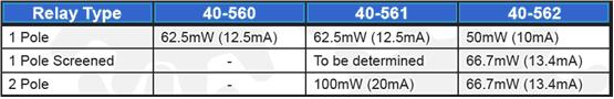 40-560系列和40-561系列BRIC模塊的最大負載電流是0.5A,接觸電阻是120 MΩ,開關觸點閉合時會產生30mW的功耗。這個結果要好于線圈產生的65mW到100mW的功耗。一些額外的溫升也是很明顯的,但是并不是至關重要的。額外的溫度作用影響不大。