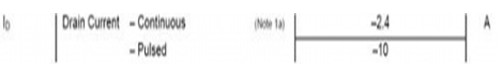 第二步是選擇MOSFET的額定電流。視電路結(jié)構(gòu)而定,該額定電流應(yīng)是負(fù)載在所有情況下能夠承受的最大電流。與電壓的情況相似,設(shè)計人員必須確保所選的MOSFET能承受這個額定電流,即使在系統(tǒng)產(chǎn)生尖峰電流時。兩個考慮的電流情況是連續(xù)模式和脈沖尖峰。該參數(shù)以FDN304P管DATASHEET為參考,參數(shù)如圖所示: