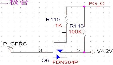 來看這個電路,控制信號PGC控制V4.2是否給P_GPRS供電。此電路中,源漏兩端沒有接反,R110與R113存在的意義在于R110控制柵極電流不至于過大,R113控制柵極的常態(tài),將R113上拉為高,截至PMOS,同時也可以看作是對控制信號的上拉,當(dāng)MCU內(nèi)部管腳并沒有上拉時,即輸出為開漏時,并不能驅(qū)動PMOS關(guān)閉,此時,就需要外部電壓給予的上拉,所以電阻R113起到了兩個作用。R110可以更小,到100歐姆也可。