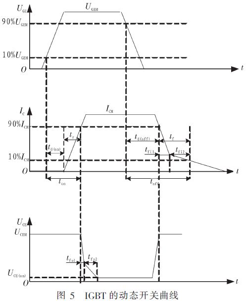 根據調制器的要求,由單片機輸出一定重復頻率的觸發脈沖經接口保護電路轉換后驅動IGBT的柵極。IGBT在柵極有驅動時接通,無驅動時關斷,實現了可控的開關功能。IGBT的動態開關曲線如圖5所示。