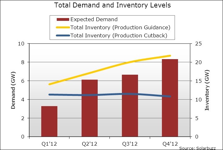 在產(chǎn)能過(guò)剩的情況下,如果不能有效控制產(chǎn)量,明年年底組件庫(kù)存有可能飆升至22GW。為了使庫(kù)存天數(shù)維持在與2011年底一樣的水位,產(chǎn)量需要比廠商的計(jì)劃減少約11GW。