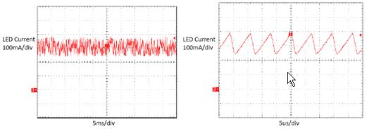 減少電容器和電感值,或不使用CTRL電阻有可能進一步降低成本和縮小PCB尺寸。使用小容量電容器會導致平均輸出電流的大幅下降,因此不推薦這樣做,但適用于亮度較低的(200至250 mA)的應用。選擇較小正向電壓的高品質LED對實現更大輸出電流的設計非常重要。