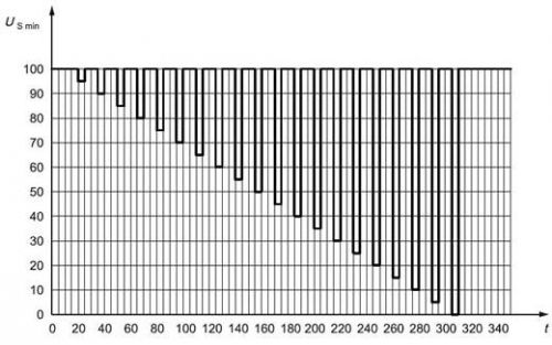 電壓驟降復(fù)位性能:檢驗(yàn)電壓驟降的情況下,模塊的復(fù)位性能,適用于具有復(fù)位功能的設(shè)備。供電電壓以5 %速率從USmin 降到 0.95 USmin,保持5 s,再上升到USmin ,至少保持10 s并進(jìn)行功能試驗(yàn)。然后將電壓降至0.9 USmin等,以USmin的5%梯度繼續(xù)進(jìn)行直到降到0V,然后再將電壓升到USmin。