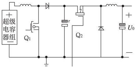 由于光伏陣列受外界環境影響較大, 本系統中12 V的太陽能板輸出電壓的變化范圍約為0~ 20 V,如果直接為鉛酸蓄電池充電, 由于鉛酸蓄電池的正常工作電壓要高于10. 8 V, 因此當弱光條件下, 太陽能板的輸出電壓低于鉛酸蓄電池的端電壓時, 其產生的電能不能被鉛酸蓄電池吸收。因此本系統采用把太陽能板輸出經過超級電容器組, 再由超級電容器組先經升降壓后為鉛酸蓄電池充電, 有效增強系統弱光充電能力, 提高利用效率。
