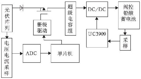本系統采用超級電容器組與鉛酸蓄電池做太陽能路燈照明系統混合儲能元件, 利用超級電容器組及升降壓電路實現弱光充電功能, 有效提高太陽能板利用率。同時利用U C3909 實現鉛酸蓄電池的四階段充電管理, 延長了蓄電池使用壽命, 提高系統穩定性及使用效率。
