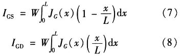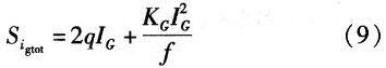 其中,JG是柵極電流密度,L是溝道長度,W是溝道寬度,x是沿溝道的位置(源極處x=0,漏極處x=L),IGS和IGD是柵極電流的柵/源和柵/漏分量。通過線性化柵電流密度與位置的關系,簡化這些等價噪聲電流分析表達式,所得的總柵極電流噪聲表達式為