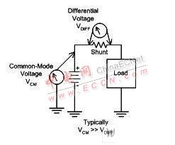 我們還要考慮到另一種共模情況:電源線路的分路開(kāi)啟,且接地短路的情況。這時(shí)共模電壓為零。電流流動(dòng)時(shí)必須進(jìn)行檢測(cè),也就是說(shuō),放大器在零共模電壓時(shí)也要能正常工作。
