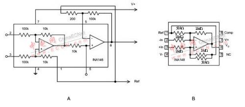 老式分路檢測(cè)電路基于差動(dòng)放大器,即周?chē)鷰膫€(gè)電阻來(lái)設(shè)置增益并提供差動(dòng)輸入的運(yùn)算放大器 (operation amplifier)。這些電阻使運(yùn)算放大器能接受超過(guò)其電源軌的共模電壓。不過(guò),這也會(huì)帶來(lái)下面一些負(fù)面問(wèn)題:一是電路必須配置為衰減器,在隨后的運(yùn)算放大器級(jí)中恢復(fù)增益,如圖 2A 中的 IC 結(jié)構(gòu)圖所示,運(yùn)算放大器的增益會(huì)成倍增大第一個(gè)放大器的偏置和漂移量,從而降低整體性能。二是采用高共模電壓差動(dòng)放大器要增加電阻網(wǎng)絡(luò),以使之在仍然只提供單位增益的同時(shí)能夠接受較高的共模電壓。高共模差動(dòng)放大器帶來(lái)的影響在于:運(yùn)算放大器的噪聲增益與共模衰減成正比,如圖 2B 所示的差動(dòng)放大器結(jié)構(gòu)采用了 20:1 的內(nèi)部共模衰減,此舉使放大器的偏置、漂移和噪聲都比運(yùn)算放大器本身擴(kuò)大了 20 倍。此外,較大的輸入電阻也會(huì)造成較高的噪聲。