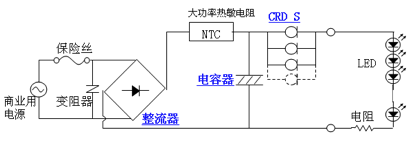 采用恒流二極管作為LED的恒流驅(qū)動(dòng)具有結(jié)構(gòu)簡單,成本低廉的優(yōu)點(diǎn)。尤其適合于小功率市電LED燈具,如球泡燈和日光燈和吸頂燈。但是由于受到功耗的限制,它只能用于高壓小電流的情況。負(fù)載只能是多個(gè)小功率LED的串聯(lián)或是采用集成的“高壓LED”。而且,如果直接采用交流整流,電容濾波的方案,會(huì)有功率因素不高的缺點(diǎn),而必須采用無源功率因素補(bǔ)償?shù)姆桨?。這些都是在使用時(shí)需要考慮的。
