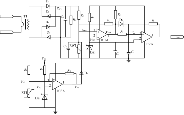 借助上述電路我們可以很容易地構成,輸入過、欠壓保護,輸出過、欠壓保護,以及過熱保護。在此僅以附加過熱保護為例,說明如下:如圖1所示,過熱保護線路是由IC3A及其周邊元件組成。當電源的溫度沒有超過設定溫度時,Vot1<Vot2,運放IC3A的輸出電壓Vot3為低電平,由于有二極管D6的存在,此時IC3A的輸出電壓Vot3不會影響到VOP2的電壓,也就是說在過熱保護線路未起作用時,它不會影響到上述的過流保護線路的性能。當電源的溫度超溫時Vot1>Vot2,運放IC3A的輸出電壓Vot3變為高電平,通過二極管D6,使VOP2的電壓升高,從而觸發過流保護線路使電源進入停止工作期。只有當電源溫度降低到超溫保護點以下時,電源才能重新進入正常工作狀態。依此類推可以構成其它輸入輸出過、欠壓保護線路。在此不再贅述。