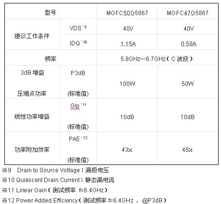 ?大功率,輸出功率分別達到100W(MGFC50G5867)和50W(MGFC47G5867)