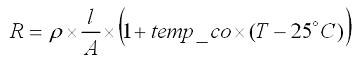 電感線圈的電阻溫度系數導致電感直流電阻會隨著溫度變化。線圈通常為銅制,溫度系數約為 3.9mΩ/℃,計算其電阻的等式如下: