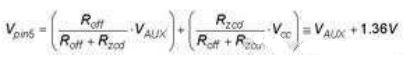 然后,施加在引腳5上的電壓就偏置。事實(shí)上,這就像是VAUX電壓與減小了1.36V的ZCD閾值比較。這樣一來,新的實(shí)際ZCD閾值就是: