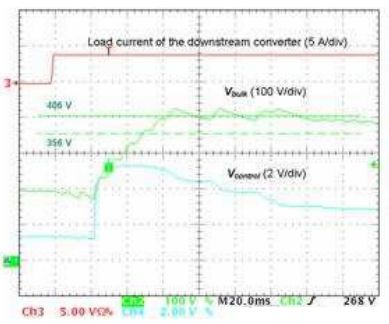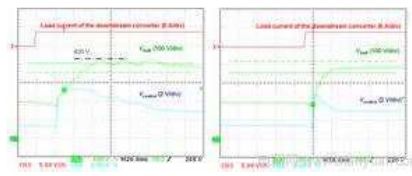 圖12 沒有Cfb時(shí)(左圖)及有Cfb時(shí)(右圖)PFC段對(duì)負(fù)載階躍變化的響應(yīng)