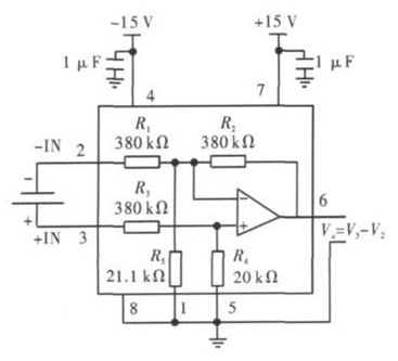 圖2 INA117 輸出電壓是兩輸入電壓之差的接法[page]