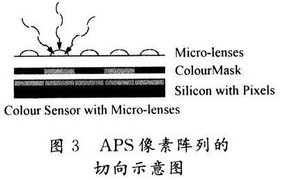 APS具有低讀出噪聲和高讀出速率等優點,但像素單元結構復雜,填充系數降低,填充系數一般只有20%~30%。為了提高像素的填充系數,APS在像素的上方設置了微透鏡(Micro-lenses),如圖3所示。