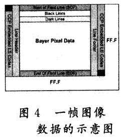 由APS陣列所獲得的圖像信息,經過圖1中列模數轉換器(Column ADC)轉換為數字信號后,再經過一系列的后續處理過程,得到輸出如圖4所示的幀圖像數據結構。
