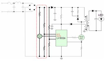 圖3:LV5026/7/8 TRIAC調光電路。