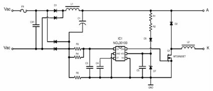 圖7:NCL30000高功率因數降壓方案應用電路。