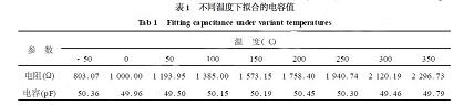 擬合參數最大時為5.037×10-8,最大相對誤差為0.78%。當溫度變化時,金屬鉑電阻值發生變化,在不同的溫度下擬合的電容值和溫度的關系如表1所示(加入1%的白噪聲)。