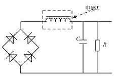 即功率因數(shù)校正( Pow er Factor Correct ion, PFC)是指有效功率與總耗電量( 視在功率) 之間的關(guān)系,也就是有效功率除以總耗電量( 視在功率) 的比值。無源PFC 是指不使用晶體管等一些有源器件組成的校正電路,一般情況下由二極管、電阻、電容和電感等無源器材組成。本文的PFC 主要是在整流橋堆和濾波電容之間加1 個電感, 具體原理如圖3 所示,利用電感上的電流不能突變的特性來平滑電容充電強脈沖的波動,改善電路中電流的畸變,并且利用電感上的電壓超前于電流這一特性來補償濾波電容電流超前電壓的特性, 使功率因數(shù)和電磁干擾都得以改善。