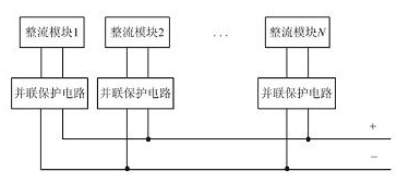 (4) 模塊并聯(lián)保護。每個模塊內(nèi)部均有并聯(lián)保護電路, 可以保證模塊發(fā)生故障時自動退出系統(tǒng),從而不影響其他正常模塊的工作。模塊并聯(lián)輸出示意圖如圖6所示。