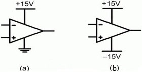 給一個運算放大器供電有兩種常見方法。第一種也是最簡單的一種方法是使用一個單一正電源,如圖1(a)所示。第二種方法是使用一個分離(雙)電源(如圖1(b)所示),其同時具有一個正電壓和一個負電壓。這種分離電源在許多模擬電路中都非常有用,因為它允許包括零電壓電位的輸入信號或者在正與負之間搖擺的輸入信號。