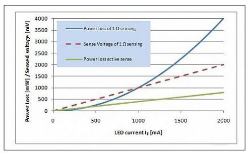因此,更好的解決方案是一個在 LED 驅動器中的有源電流阱或者電流源,如圖 3 所示。我們可使用一種壓降和由此產生的功耗都得到降低的方法對內部電流檢測電阻進行調節,具體調節情況取決于 LED 電流的大小。如果為低 LED 電流,則壓降可以維持足夠的高以獲得精確的檢測信號。
