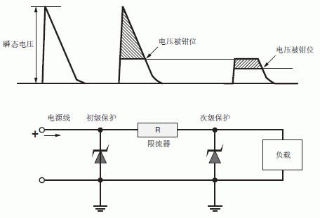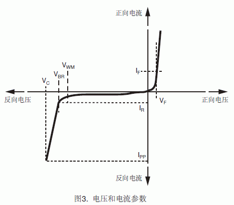 在特定的峰值脈沖電流定額下,TVS上會出現(xiàn)鉗位電壓。TVS的擊穿電壓在非常小的電流下測得(例如1mA或10mA),它不同于應(yīng)用條件下的實際雪崩電壓。因此,半導(dǎo)體制造商所標注的是在大電流下的典型或最大擊穿電壓。