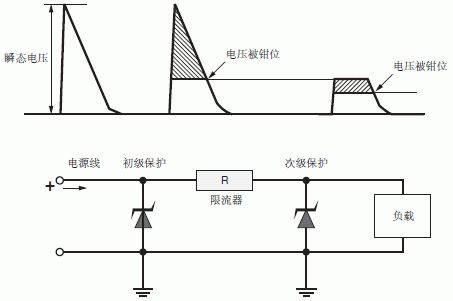 對(duì)小電流負(fù)載的保護(hù),可有意識(shí)地在線路中增加限流電阻,只要限流電阻的阻值適當(dāng),不會(huì)影響線路的正常工作,但限流電阻對(duì)干擾所產(chǎn)生的電流卻會(huì)大大減小。這就有可能選用峰值功率較小的TVS管來(lái)對(duì)小電流負(fù)載線路進(jìn)行保護(hù)。