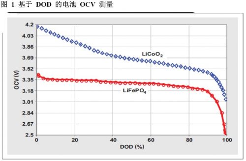然而,更新電池總化學(xué)容量 (Qmax) 相關(guān)信息要求具備某些條件。磷酸鐵鋰(LiFePO4) 電池的極端穩(wěn)定電壓狀態(tài)下要完成這項(xiàng)工作變得較為困難(請參見圖1),特別是如果無法對電池完全放電且讓其休息數(shù)小時(shí)那就更加困難了。圖 1顯示了典型開路電壓 (OCV) 特性與鈷酸鋰 (LiCoO2) 和磷酸鐵鋰 (LiFePO4)電池化學(xué)屬性放電深度 (DOD) 的關(guān)系。本文主要討論參考文獻(xiàn) 1 和參考文獻(xiàn)2 的阻抗跟蹤技術(shù)。