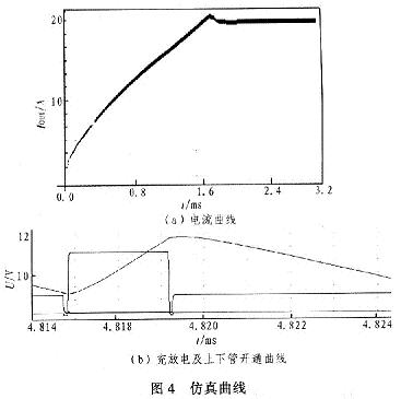 圖3中,R1,R2為電壓測量電阻,Rc為電流測量電阻。調(diào)節(jié)R1可以設定最大輸出電壓。Rc限制最大輸出電流。當最大電壓或電流其中一個達到給定值,則脈沖寬度最大。這樣可以保證負載正常工作。