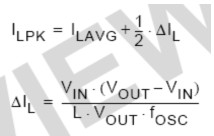 其中:ΔIL是電感電流的紋波峰峰值,單位是A;L是電感值,單位是H;FOSC是開關(guān)頻率。