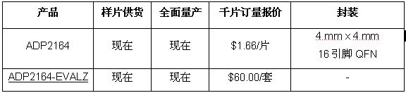 Analog Devices, Inc. (ADI),全球領先的高性能信號處理解決方案供應商,最近推出一款6.5 V、4 A輸出DC-DC調節器ADP2164,其功率轉換效率大于96%。這款高集成度調節器ADP2164提供2.7 V至6.5 V輸入電源電壓范圍,輸出范圍低至0.6 V,內置低導通電阻開關FET,不僅能夠實現最高效率,而且減少了電路板空間。ADP2164效率極高,采用緊湊型4 mm x 4 mm QFN 16引腳封裝。這款新型DC-DC調節器針對多電源軌、終端負載應用而設計,適合從通信基礎設施到工業設備的各種要求小尺寸、快速瞬態性能和高精度電壓調節的應用。與其它5 V調節器不同,ADP2164的最大輸入范圍為6.5 V,可提供額外的安全裕量。