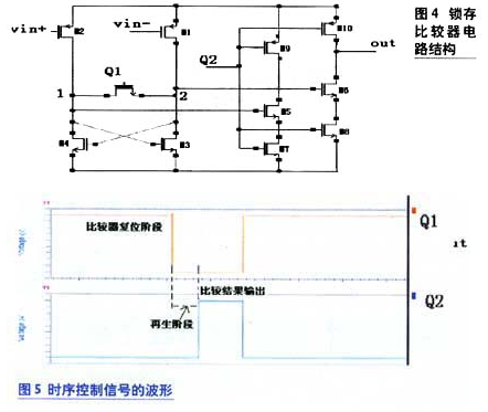 RS與兩個相反的時鐘信號用來控制比較器的復位,當RS為高時,比較器處于復位狀態;RS為低時,比較器開始進行比較。這樣通過每次比較前的復位,可以進一步提高比較器的翻轉速度。