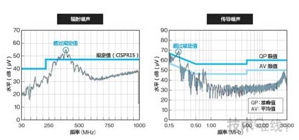 EMC規(guī)定中定義了輻射噪聲和傳導(dǎo)噪聲兩種電磁噪聲的測(cè)量,LED燈泡也不例外。有的LED燈泡產(chǎn)品的噪聲超過了CISPR15的規(guī)定值(準(zhǔn)峰值:QP和平均值:AV)。