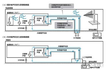 圖5:傳導(dǎo)噪聲的測(cè)量在屏蔽室內(nèi)進(jìn)行