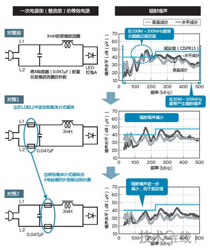圖10:LED燈泡的傳導(dǎo)噪聲對(duì)策示例