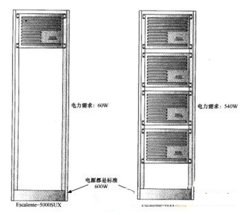 以圖所示的服務(wù)器為例,兩個服務(wù)器來自同一個系列WasteTech""sEscalenteline。左邊的WasteTech""sEscalente5000SUX配置了足夠的硬件,只需要60W的電能。右邊的6000SUX的最高配置安裝上足夠多的硬件后則要消耗540W的電能。然而兩臺服務(wù)器卻使用了同樣的電源。盡管目前的電源使6000SUX獲得了足夠的電能,但是對于消耗電量較少的服務(wù)器而言,則提供了過多的電能。這種過度供電造成了浪費(fèi)。