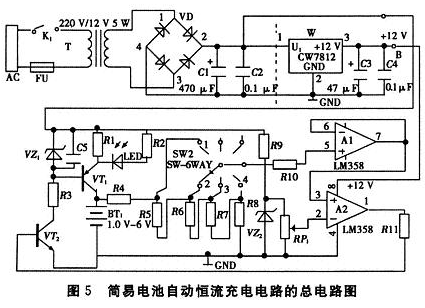 2 簡易充電器總電路原理圖及元器件清單