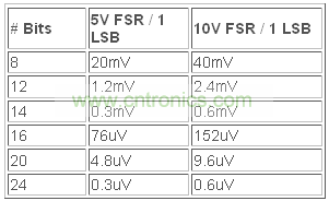 在今天的醫療、測試測量以及工業控制市場上,隨著數據轉換器分辨率的提高,或者說隨著信號滿量程范圍的減小,對于更高噪聲性能的需求變得越來越重要。表 1 顯示了隨著數據轉換器分辨率的提高,1LSB 電壓階躍減小?;蛘?,隨著滿量程電壓擺動量級的減小,1 LSB 電壓階躍減小。隨著 1 LSB 電壓值減小,電源產生的噪聲影響增加。電源產生的噪聲增加了信噪比 (SNR),從而降低了數據轉換器的有效分辨率。例如,由于電源產生的過度噪聲,一個 16 位數據轉換器會表現得像一個 14 位數據轉換器。具體應由設計工程師來決定如何進行噪聲和精確度之間的折中。