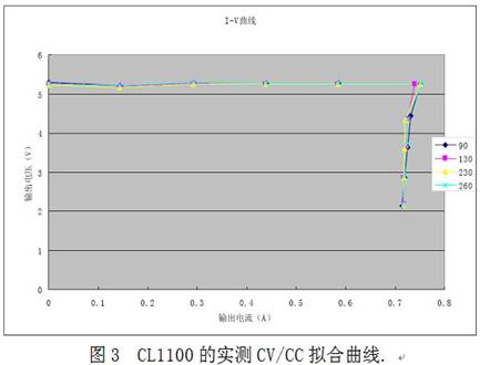 芯聯半導體推出的CL1100就是一款具備初級(原邊)調節技術、變壓器容差補償、線纜補償和EMI優化技術的原邊反饋AC-DC控制器,并且具有多種保護功能,例如軟啟動、逐周期的過流保護(OCP)、CS采樣端前沿消隱(LEB)、以及過壓保護(OVP)和欠壓保護(UVLO)。實測的CL1100的恒壓/恒流特性曲線如圖3所示,該芯片可將恒壓/恒流精度都控制在±3%之內。
