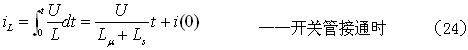 假設變壓器初級線圈的等效電感為L,,當電源開關管Q1接通時,流過變壓器初級線圈的電流為: